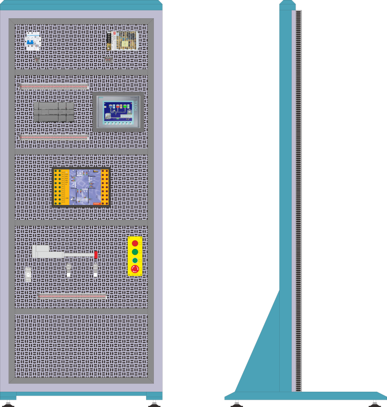 配套教學使用的對象,三層電梯、自動售貨機、機械手、自動門、天塔之光、全自動洗衣機、自動成型機、紅綠燈、裝配流水線、四路搶答器、音樂噴泉、軋鋼機、郵件分揀、物料分揀、多級傳輸帶等模擬控制實訓,指示燈采用貼片雙色LED,面板采用3D立體彩色搭配設計,使模擬對象更直觀立體,開關采用自復位兼自鎖一體設計使實訓能靈活實用,為適用各類PLC模塊具有輸入信號高低電平切換功能。