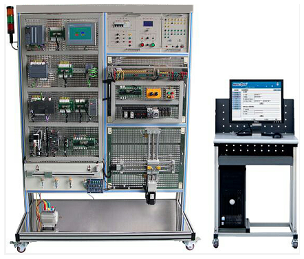 實(shí)訓(xùn)裝置由S7-1500單元、S7-300單元、S7-1200單元、變頻調(diào)速單元、分布式I/O單元、伺服單元、電氣氣動(dòng)單元、觸摸屏單元、以太網(wǎng)交換機(jī)、交流電機(jī)等組成。