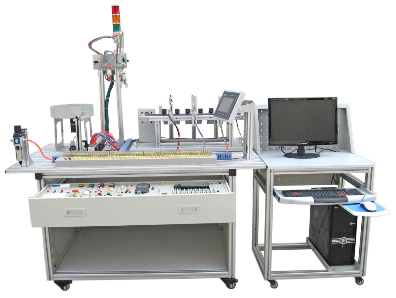 實訓(xùn)裝置由由鋁合金導(dǎo)軌式實訓(xùn)臺、典型的機電一體化設(shè)備的機械部件、PLC模塊、變頻器模塊、按鈕模塊、電源模塊、模擬生產(chǎn)設(shè)備實訓(xùn)模塊、接線端子排和各種傳感器、計算機等組成。整體結(jié)構(gòu)采用開放式和拆裝式,實訓(xùn)裝置用于機械部件組裝,可根據(jù)現(xiàn)有的機械部件組裝生產(chǎn)設(shè)備,也可添加機械部件組裝其他生產(chǎn)設(shè)備,使整個裝置能夠靈活的按教學(xué)或競賽要求組裝具有生產(chǎn)功能的機電一體化設(shè)備。模塊采用標準結(jié)構(gòu)和抽屜式模塊放置架,互換性強;按具有生產(chǎn)性功能和整合學(xué)習(xí)功能的原則確定模塊內(nèi)容,使教學(xué)或競賽時可方便的選擇需要的模塊。設(shè)備需完全符合電工電子全國職業(yè)技能大賽所要求,同時還要求具有可拓展功能,可以組成更加大型的生產(chǎn)模擬系統(tǒng),以配合各個用戶學(xué)校不同層次,不同專業(yè)的教學(xué)及培訓(xùn)要求。