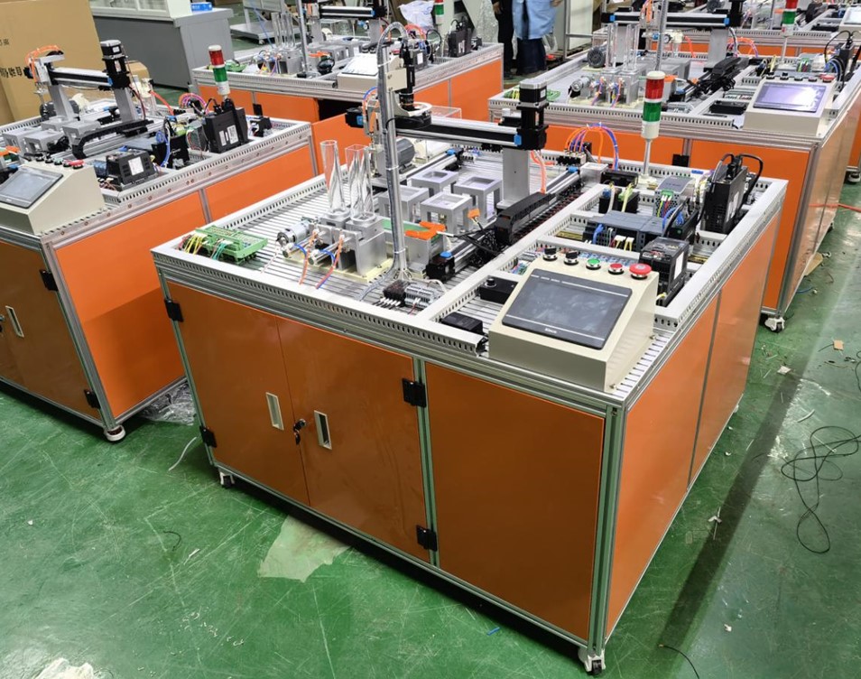 2.以上模塊對應(yīng)以下單元:PLC單元、485通信單元、工業(yè)視覺識(shí)別單元、RFID產(chǎn)品溯源單元、氣動(dòng)控制基本單元、變頻調(diào)速單元、觸摸屏單元、以太網(wǎng)交換機(jī)、伺服系統(tǒng)控制單元等組成、溫度檢測變送單元。