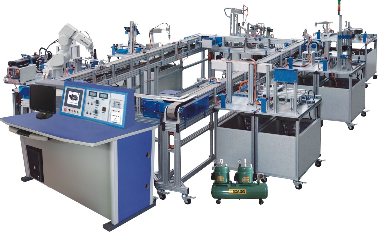 該系統(tǒng)上使用了三自由度、四自由度及六軸工業(yè)機器人,學(xué)員可學(xué)習(xí)機器人的各種控制技術(shù),同時學(xué)習(xí)機械手的設(shè)計。