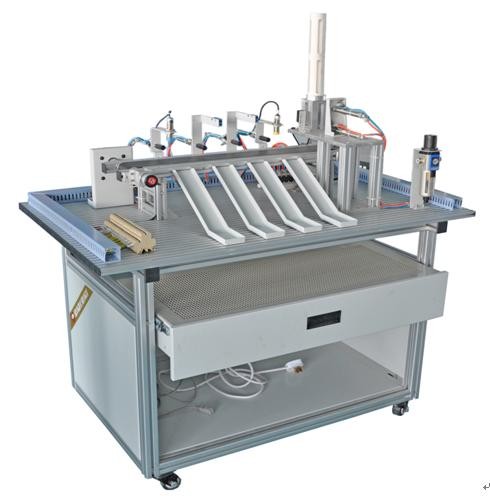 本實(shí)訓(xùn)裝置是針對(duì)機(jī)電一體化教學(xué)的要求而研發(fā)的,它涵蓋了PLC、氣動(dòng)控制、電機(jī)傳動(dòng)、電磁鐵控制、位置控制、傳感器檢測(cè)等教學(xué)內(nèi)容,是實(shí)際工業(yè)現(xiàn)場(chǎng)生產(chǎn)設(shè)備的微縮裝置?;诙喾N傳感器的檢測(cè)及旋轉(zhuǎn)編碼器的精確定位,實(shí)現(xiàn)對(duì)不同材質(zhì)、不同顏色物體的分揀。裝置采用全開(kāi)放式布局且具有設(shè)故排故單元,可充分鍛煉操作者系統(tǒng)接線、機(jī)械調(diào)試安裝、軟件編程、獨(dú)立構(gòu)建控制系統(tǒng)、反饋整定、故障檢測(cè)及檢修的能力。適合于自動(dòng)化、電氣自動(dòng)化、電氣工程等專業(yè)的《運(yùn)動(dòng)控制》、《氣壓系統(tǒng)》、《機(jī)電一體化技術(shù)》、《檢測(cè)與轉(zhuǎn)換技術(shù)》、《可編程控制技術(shù)》等課程開(kāi)設(shè)實(shí)訓(xùn)課。
