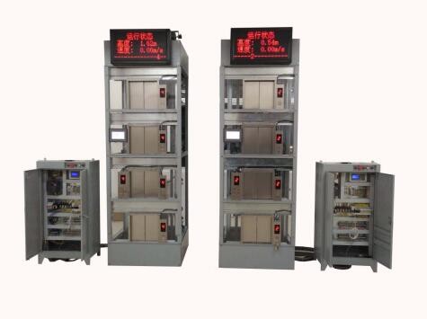 電梯電氣控制柜:包含可編程控制器、變頻器、低壓電氣(繼電器、接觸器、熱繼電器、相序保護器)、智能考核系統(tǒng)等組成部分。