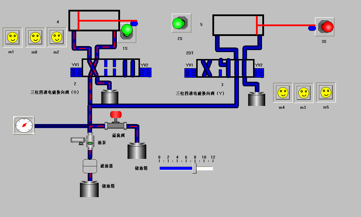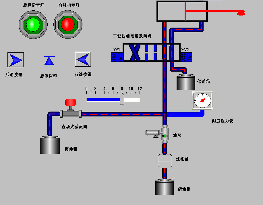 六、組態(tài)仿真畫面演示控制的液壓控制實(shí)訓(xùn)項(xiàng)目