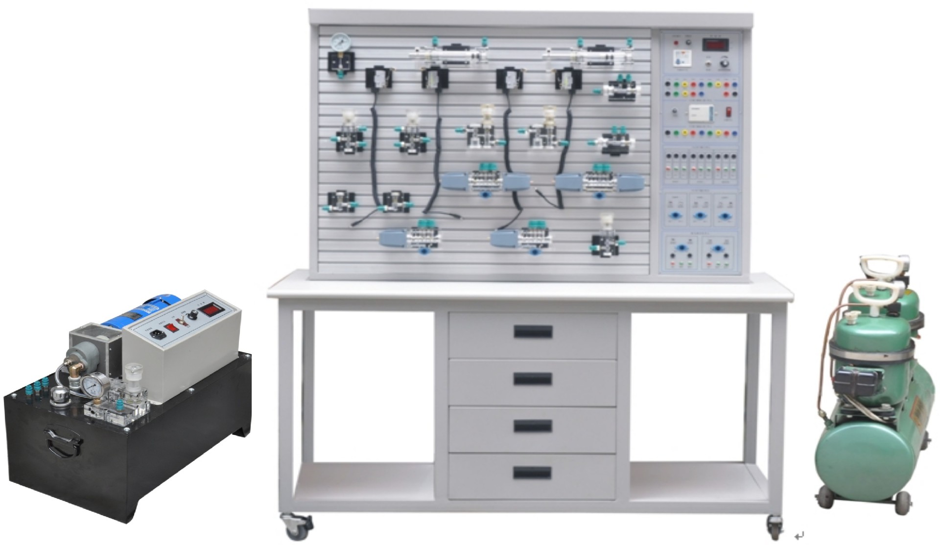 該實驗臺為鐵質(zhì)雙層亞光密紋噴塑結(jié)構(gòu)。美觀大方,堅固耐用,操作方便?;九渲脼椋簹鈩訉嶒炘?;氣動實驗PLC控制模塊1套;低噪音空壓機1臺;液壓實驗元件1套,液壓實驗PLC控制模塊1套;液壓實驗泵站1臺。(計算機根據(jù)學(xué)校要求另行配置)
