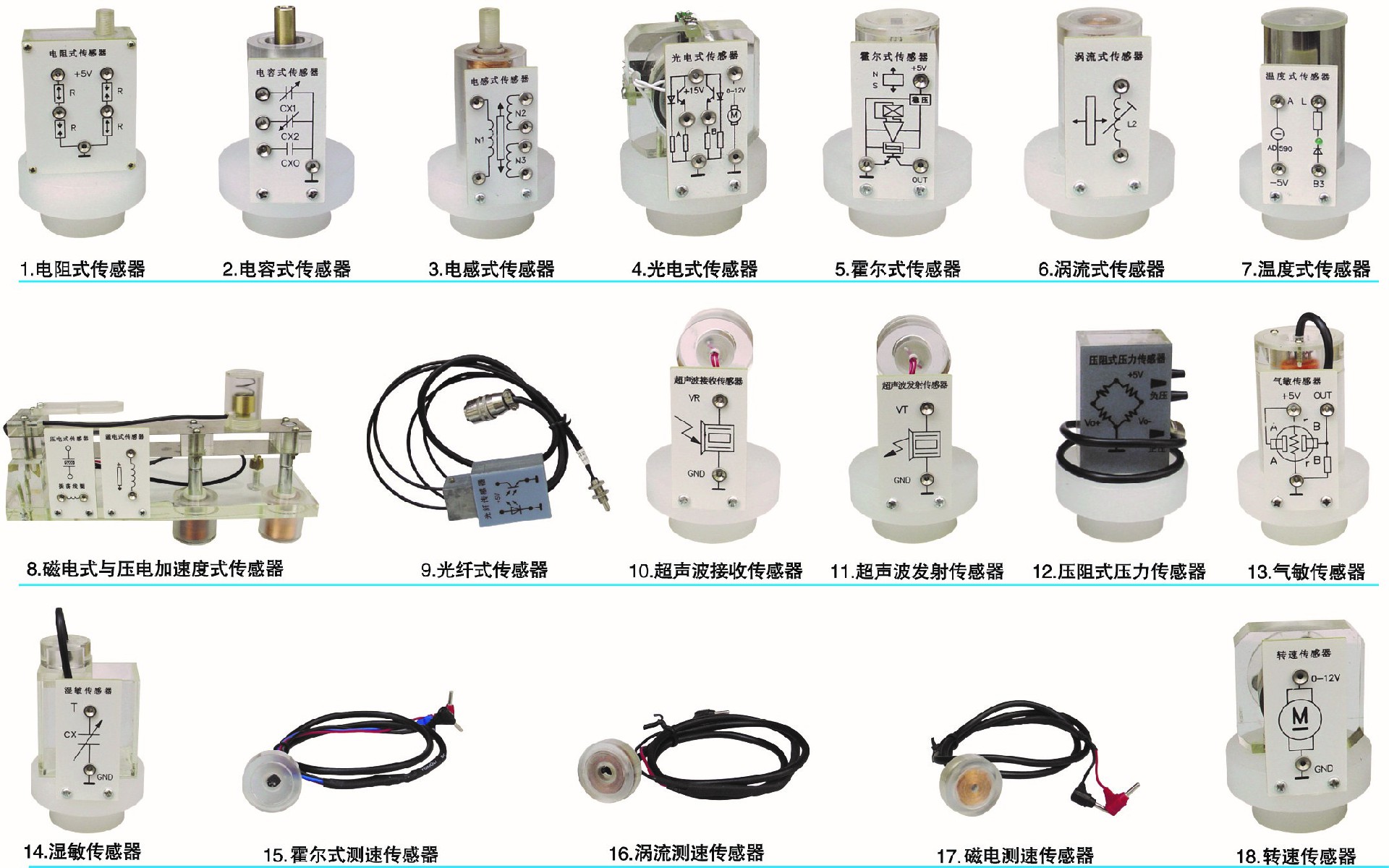 2、每種傳感器每個(gè)獨(dú)立,傳感器上印有原理圖與接線口,給學(xué)生做實(shí)驗(yàn)時(shí)快捷方便,而且老師可以帶到課堂上講課用。