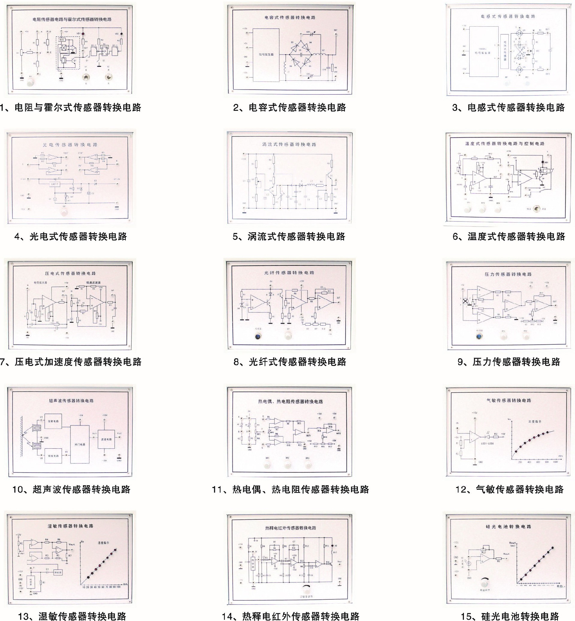 2.每種傳感器每個(gè)獨(dú)立,傳感器上印有原理圖與接線口,學(xué)生做實(shí)驗(yàn)時(shí)快捷方便,而且老師可以帶到課堂上講課用。