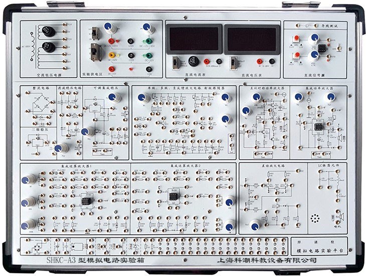 模擬電路實(shí)驗(yàn)箱由鋁木合金箱體、高性能線性電源、和實(shí)驗(yàn)電路板組成。其中實(shí)驗(yàn)電路采用固定功能模塊方式,電路原理和元器件符號(hào)清晰,實(shí)驗(yàn)用元器件可以焊裝在線路板的反面,安全可靠,不易損壞,也可以裝在線路板的正面,元件直觀可見(jiàn),感性認(rèn)識(shí)強(qiáng),正面還有實(shí)驗(yàn)電路原理圖,使學(xué)生在實(shí)驗(yàn)時(shí)對(duì)原理一目了然。