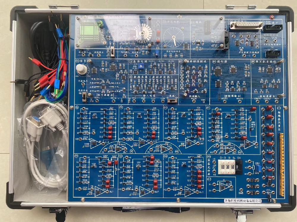 6、運(yùn)算模擬單元:提供8個(gè)OP07基本運(yùn)放模擬單元(實(shí)驗(yàn)用),每單元的輸入回路有6組0.5%精度電阻、或 5%精度電容,反饋回路有7組0.5%精度電阻、或5%精度電容,和1個(gè)運(yùn)算放大器組成。另有擴(kuò)展運(yùn)放模擬單元,其一可調(diào)零放大器,構(gòu)成比例環(huán)節(jié)、慣性環(huán)節(jié)、積分環(huán)節(jié)、比例微分環(huán)節(jié),PID環(huán)節(jié)和典型的二階、三階系統(tǒng)等;其二校正網(wǎng)絡(luò)庫,可構(gòu)成各種校正環(huán)節(jié);其三是2組整形模塊。