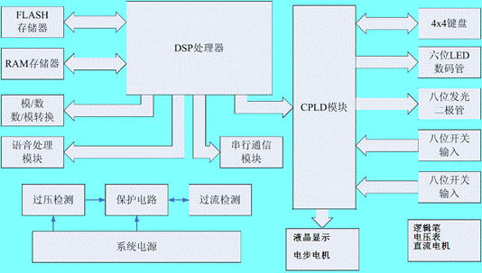 1、中心處理模塊。主要包括DSP微處理器TMS320VC5402,RAM(CY7C1021),F(xiàn)ALSH(SST39LF200A),是整個實驗驗裝的核心部分,負(fù)責(zé)整個實驗系統(tǒng)各模塊間的控制。