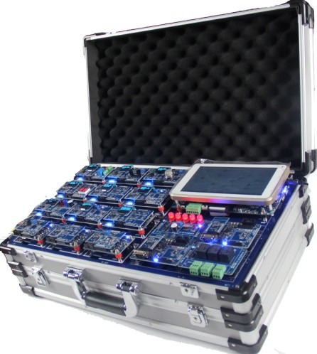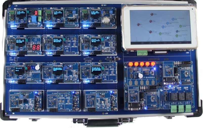 物聯(lián)網(wǎng)技術開發(fā)綜合教學平臺,除了將常用的短距離無線通信方式ZigBee、WiFi、Bluetooth、IEEE802.15.4和有線通信方式以太網(wǎng)、CAN、485總線等集成到一個實訓平臺中,更是將IPv6下一代互聯(lián)網(wǎng)技術融入到無線節(jié)點中,統(tǒng)一采用IPv6協(xié)議組網(wǎng),實現(xiàn)傳感器節(jié)點唯一可尋址。同時,平臺提供Cortex-A9四核處理器作為異構網(wǎng)關,具有1GB內(nèi)存,8GB大容量存儲空間和豐富的外圍接口,可板載GPS定位、WIFI/BT二合一通訊、4G移動通訊等多種模塊,內(nèi)嵌Android、Linux雙系統(tǒng),可一鍵切換;方便學校開展各種通訊知識的教授、嵌入式系統(tǒng)開發(fā)和Android應用開發(fā)。