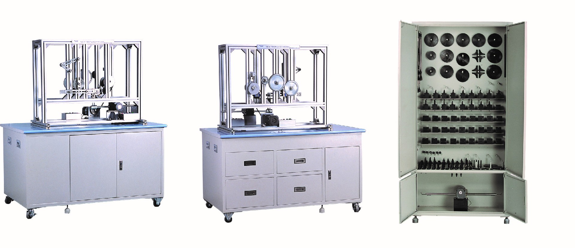 1、實(shí)驗(yàn)臺(tái)機(jī)架采用單面4臺(tái)/套或雙面2臺(tái)/套兩種方式,配有零件存放柜,美觀大方、適用性強(qiáng)、操作方便,零件存放柜外觀明了、簡(jiǎn)潔,零件排布合理、有序,易于存放和拿取。