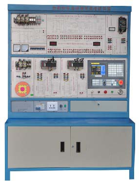 2.機床實訓(xùn)柜采用鐵質(zhì)亞光密紋噴塑結(jié)構(gòu),正面裝有數(shù)控系統(tǒng)和操作面板,器件與實際機床廠的模式一致。上面裝有變頻器、伺服驅(qū)動器、交流接觸器、繼電器、保險絲座、斷路器、開關(guān)電源等,柜內(nèi)裝有接線端子排和走線槽、變壓器等;電氣柜底部設(shè)計為空,給用戶預(yù)留盛放資料、工具等。