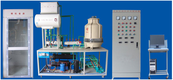 實(shí)訓(xùn)對象采用不銹鋼鋼架制成,系統(tǒng)由制冷機(jī)組、冷卻水系統(tǒng)、媒水水系統(tǒng)、供暖系統(tǒng)等組成。
