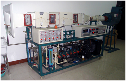 本裝置集直流空調(diào),制冷壓縮機(jī)性能,制冷熱泵,表冷器性能,加熱器性能于一體,可進(jìn)行空氣的加熱,加濕,冷卻,干燥,蒸發(fā)器,冷凝器進(jìn)行換相,可測出各點(diǎn)溫度、濕度、壓力、風(fēng)量、水流量及功率,計(jì)算出制冷量、功率、制冷系數(shù)、效率、并進(jìn)行熱平衡計(jì)算。