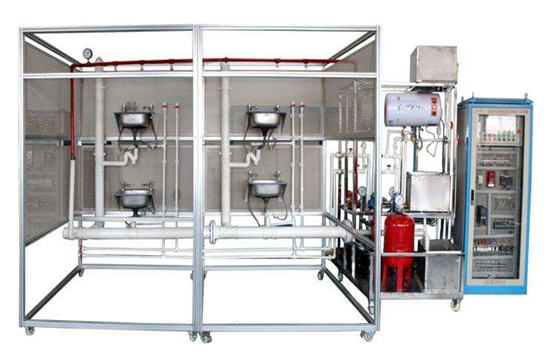 1.不銹鋼水盤,冷、熱兩用水龍頭,模擬兩層建筑、網(wǎng)孔式房間、4個(gè)住戶用水終端