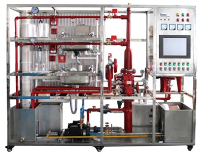 2.消防給水系統(tǒng):主要有給水箱、噴淋泵、穩(wěn)壓罐、濕式報警閥、壓力開關、水流指示器、消防給水管道、閉式噴淋頭等組成。管路采用鍍鋅管進行設計,可進行鍍鋅管的切割、套絲、安裝和通水試驗操作,通過控制系統(tǒng)可實現噴淋滅火功能。