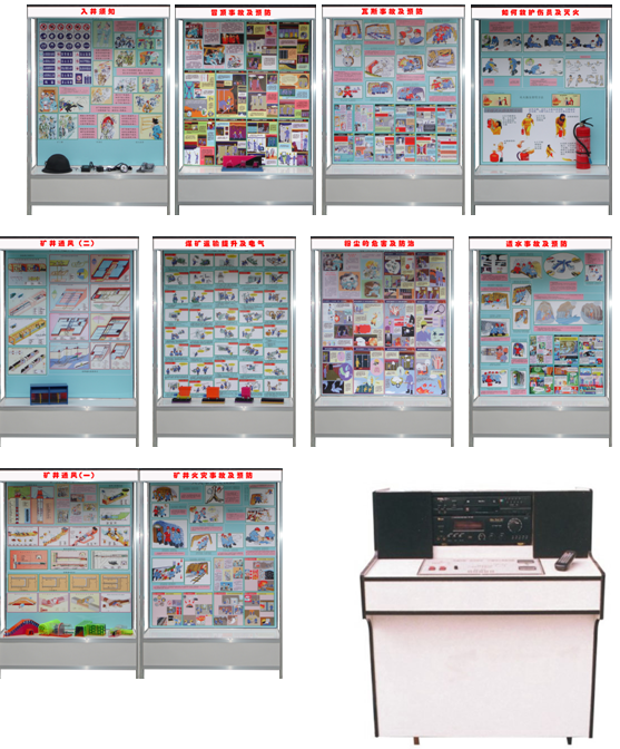 本陳列柜是根據(jù)煤礦安全技術(shù)培訓(xùn)同編教材,煤炭工業(yè)出版社教學(xué)大綱設(shè)計(jì)一套:電腦控制、CD解說《煤礦安全》示教陳列柜。共10個(gè)柜與1個(gè)控制臺(tái),用CD解說遙控控制。加強(qiáng)對(duì)煤礦專業(yè)管理人員及工人,對(duì)安全范圍增強(qiáng)認(rèn)識(shí)、加深理解、模型逼真、語言流暢、是不可缺少的教學(xué)設(shè)備。