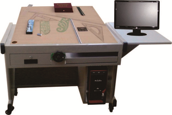 2.桌面采用方型升降架,金屬方框架不和圖板連接,上面可以放置1號或者2號椴木繪圖板,兼顧課堂教學(xué)和制圖作業(yè)的雙重連續(xù)性和多款性;