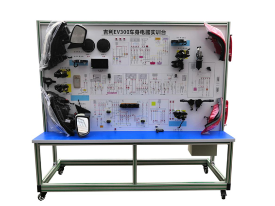 該設(shè)備采用(全新吉利EV300)純電動(dòng)汽車車身電器系統(tǒng)實(shí)物為基礎(chǔ),充分展示純電動(dòng)汽車儀表系統(tǒng)、燈光系統(tǒng)、雨刮系統(tǒng)、喇叭系統(tǒng)、低壓電源電器系統(tǒng)、電動(dòng)車窗系統(tǒng)、電動(dòng)門鎖、音響系統(tǒng)等低壓電器系統(tǒng)的組成結(jié)構(gòu)和工作過程。適合于各類院校對(duì)純電動(dòng)車車身電器系統(tǒng)理論和維修實(shí)訓(xùn)的拆裝與維護(hù)、結(jié)構(gòu)與原理認(rèn)知、系統(tǒng)操作、功能動(dòng)態(tài)演示、故障檢測(cè)與診斷教學(xué)需要。