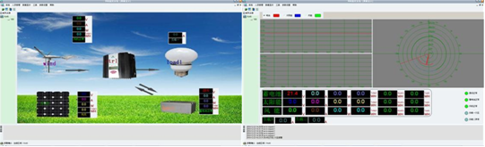 (2)顯示內(nèi)容:蓄電池電壓、風(fēng)機(jī)電壓、光伏電壓、風(fēng)機(jī)電流、光伏電流、風(fēng)機(jī)功率、光伏功率,能量模擬圖,當(dāng)前風(fēng)速(米/秒),當(dāng)前風(fēng)向(度),當(dāng)前風(fēng)力資源平估。