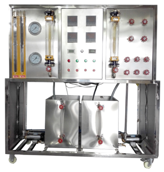 套管式換熱器,板式換熱器,列管式換熱器,冷、熱水防腐水泵,冷、熱水轉(zhuǎn)子流量計,冷、熱水不銹鋼原水箱及加熱水箱,順、逆流調(diào)節(jié)閥門組,阻力測試壓力表及U型差壓計,加熱功率由固體調(diào)壓模塊無級調(diào)節(jié),萬能信號輸入巡檢儀顯示溫度,電流表,電壓表,不銹鋼臺架及控制屏等。