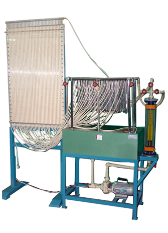 防腐水泵,PVC水箱,水位計(jì),分配聯(lián)箱、匯集聯(lián)箱,蛇形管,40根測(cè)壓管,40根玻璃差壓板,可調(diào)節(jié)閥門(mén)組,不銹鋼支架等。