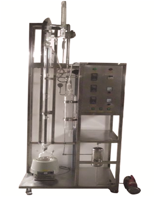 1、精餾塔塔徑φ25mm,塔高1400mm,材質為玻璃塔結構,塔內填裝φ3x 3 mm不銹鋼θ網(wǎng)環(huán)型填料。塔釜為三口燒瓶帶導電膜保溫,保溫段加熱功率上下兩段各300W;塔釜容積:500ml;聯(lián)接方式:直磨口。