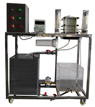 有機玻璃外箱體、電滲析器、直流穩(wěn)壓電源、配水箱、進(jìn)水泵、流量計、壓力表、不銹鋼框架、控制屏。