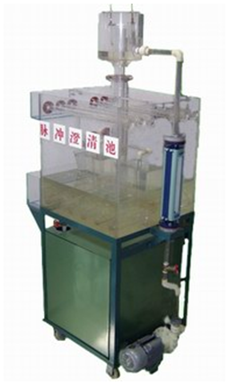 有機(jī)玻璃脈沖澄清池、進(jìn)水管、放空管、水泵、配水箱、轉(zhuǎn)子流量計(jì)、連接管道和球閥、電控箱、不銹鋼臺(tái)架。