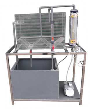 KCWL-54型曝氣沉砂池 一、設(shè)備特點(diǎn):1. 設(shè)備布局合理、美觀,結(jié)構(gòu)清晰,整體感強(qiáng)。2. 沉砂池為透明有機(jī)玻璃制造,可觀察污水在各通道內(nèi)的運(yùn)行情況。二、實(shí)驗(yàn)?zāi)康模?. 了解曝氣沉砂池的構(gòu)造。2. 掌握曝氣沉砂的工作原理和操作方法。三、主要配置: