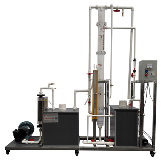有機玻璃三段填料塔、液體緩沖箱、氣體緩沖箱、進出口風管、渦輪氣泵、噴淋系統(tǒng)、加液泵、氣體流量計、液體流量計、SO2氣體鋼瓶及減壓器(用戶自備)、SO2氣體流量計、電控箱、管道閥門、不銹鋼支架。