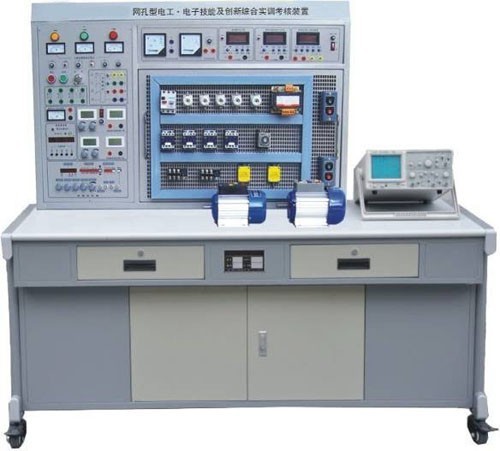 電工電子技能實訓(xùn)考核裝置是為配合我國職業(yè)教育和就業(yè)人員實際操作、培訓(xùn)、鑒定的需求,上??瞥笨平淘O(shè)備有限公司綜合了大中專院校、職業(yè)院校、技工學(xué)校的《電工技能訓(xùn)練》《電工實訓(xùn)》《電氣控制技術(shù)》《電力拖動控制線路與技能訓(xùn)練》《電子技能訓(xùn)練》等相關(guān)科目的實驗及實訓(xùn)教學(xué)內(nèi)容而研發(fā)了本電工實訓(xùn)裝置。裝置電工部分采用網(wǎng)孔板結(jié)構(gòu),訓(xùn)練與鑒定接近工業(yè)現(xiàn)場,外形美觀、結(jié)構(gòu)合理、牢固、耐用,實訓(xùn)方式靈活,增加元器件即可增加實訓(xùn)項目,可擴(kuò)展性強(qiáng),裝置設(shè)置多重科學(xué)安全保護(hù)措施,確保設(shè)備和操作者人身安全,非常適合各大中專院校、職業(yè)學(xué)院、技工學(xué)校和各類培訓(xùn)機(jī)構(gòu)訓(xùn)練學(xué)生電工電子基本技能、專業(yè)技能和綜合技能,也可進(jìn)行電工等級考核和技能鑒定。