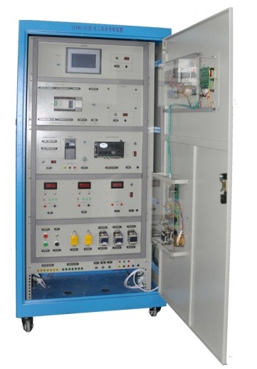 1、本裝置采用標(biāo)準(zhǔn)配電柜為主體柜,充分利用該柜雙面空間位置,其中一面裝有電源控制、交直流電源、測(cè)量儀表、低壓電氣器件,另一面裝有PLC模擬量模塊、變頻器、直流調(diào)速模塊,該配電柜占地面積小,外形美觀;
