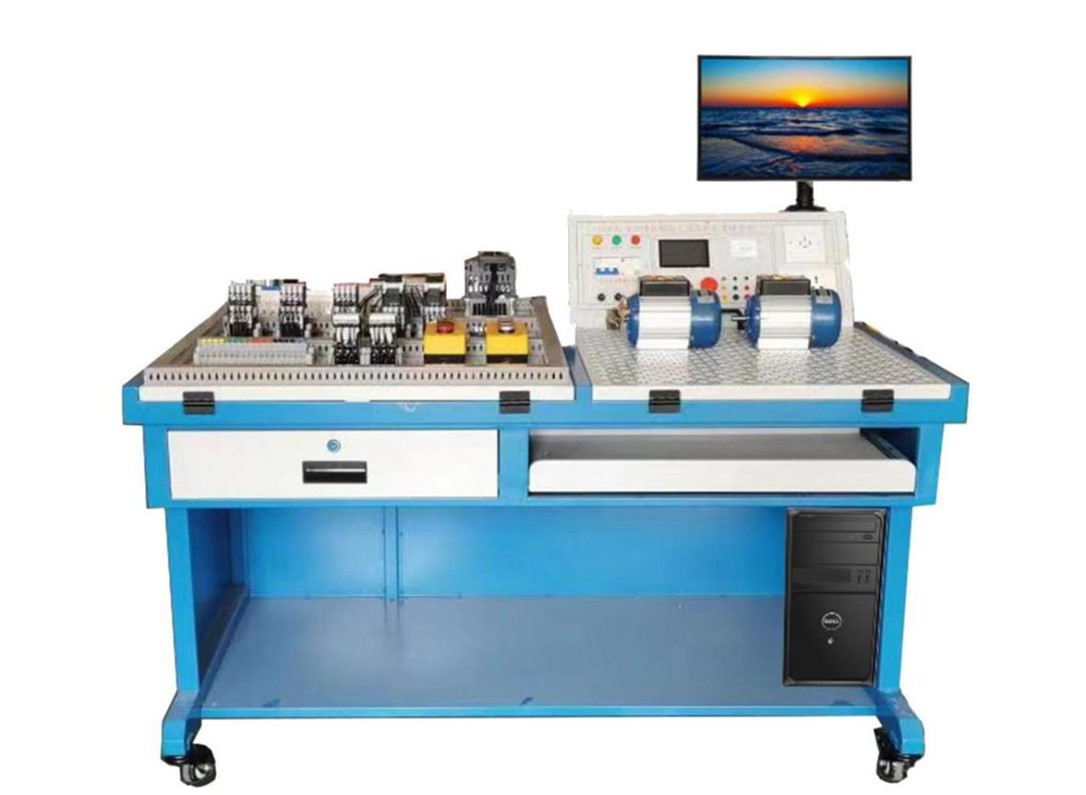 ▲設(shè)備由實(shí)訓(xùn)屏(內(nèi)置電源)、實(shí)訓(xùn)桌(含鍵盤)、儲(chǔ)物柜三大部分組成。鋼制表面經(jīng)高溫噴塑處理,美觀大方且有效起到防銹絕緣的作用;電源箱的布局依次為電源保護(hù)裝置、電源指示裝置、電源輸出;實(shí)訓(xùn)桌左側(cè)安裝有角度可以調(diào)節(jié)的嵌入式的考核平臺(tái)1張,所有元器件均采用端子引出,學(xué)生接線只需在端子上進(jìn)行接線,可以有效的保護(hù)元器件,轉(zhuǎn)接端子采用接插兩用端子排,方便與元器件和實(shí)訓(xùn)電源屏的連接,右側(cè)裝有網(wǎng)孔板一塊,角度可調(diào)嵌入式安裝;實(shí)驗(yàn)桌底部裝有至少4個(gè)導(dǎo)向輪,方便設(shè)備移動(dòng);儲(chǔ)物柜采用標(biāo)準(zhǔn)結(jié)構(gòu)和抽屜式,用于存放工具以及實(shí)訓(xùn)資料。電腦通過可調(diào)節(jié)電腦支架安裝于電源屏的上方。