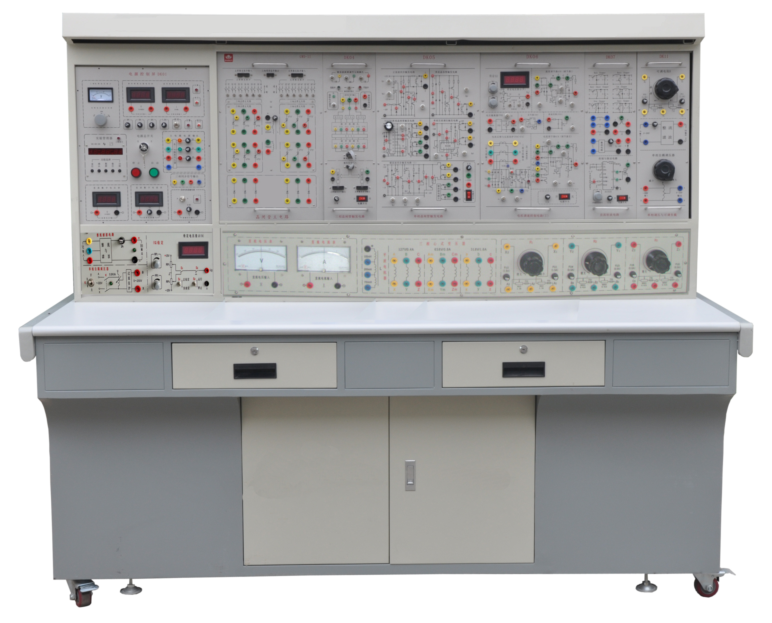 實驗桌為鐵質(zhì)雙層亞光密紋噴塑結(jié)構,桌面為防火、防水、耐磨高密度板,結(jié)構堅固,形狀似長方體結(jié)構,造形美觀大方;設有兩個大抽屜,用于放置工具、存放掛件及資料等。桌面用于安裝電源控制屏并提供一個寬敞舒適的工作臺面。實驗桌還設有四個萬向輪和四個固定調(diào)節(jié)機構,便于移動和固定,有利于實驗室的布局。