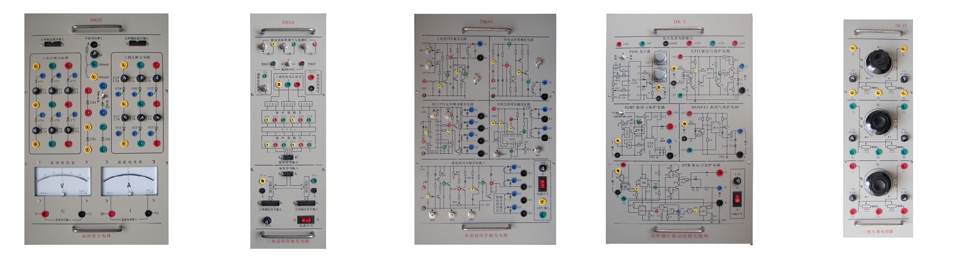 提供三相芯式變壓器一個(該變壓器有2套副邊繞組,原、副邊繞組的電壓為127V/63.6V/31.8V),用于異步電機(jī)串級調(diào)速實驗和三相橋式、單相橋式有源逆變電路實驗;還設(shè)有三相不控整流電路等模塊。