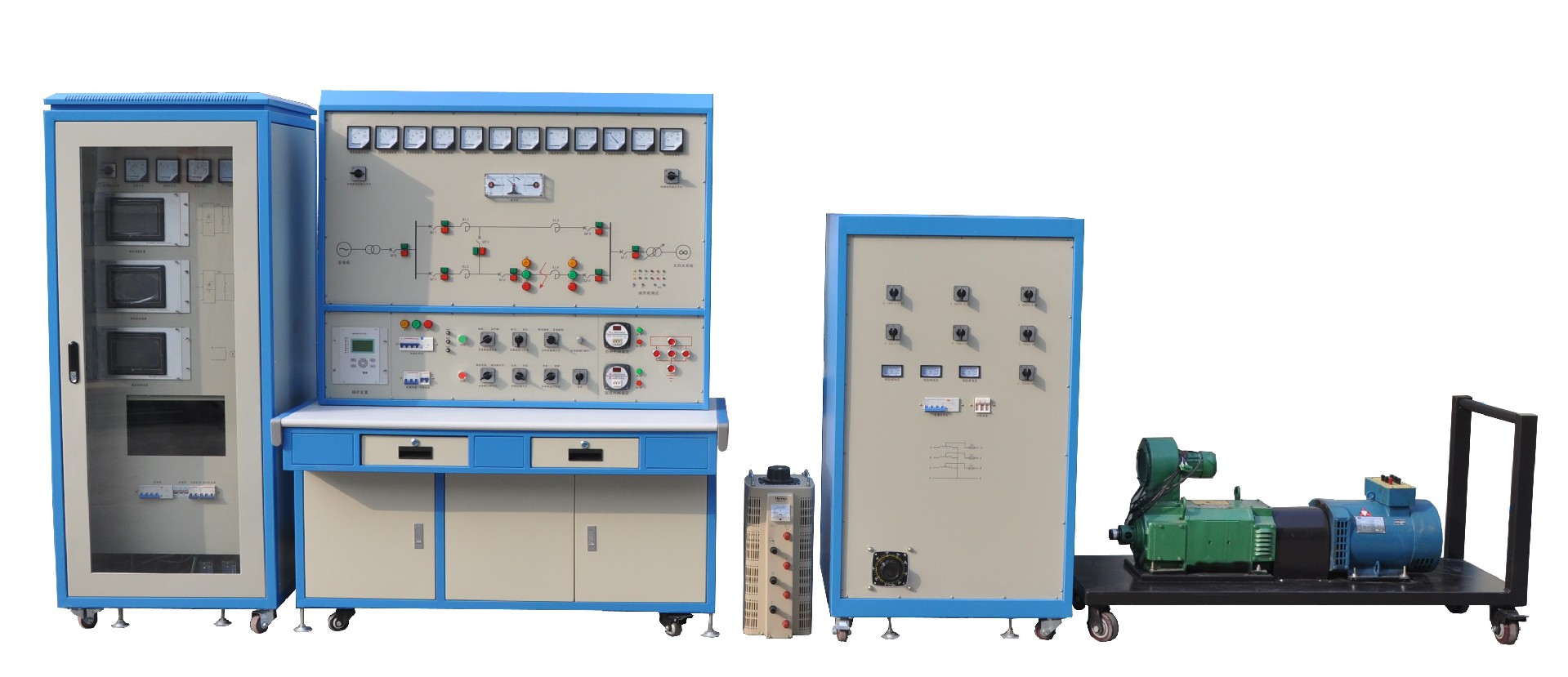 該平臺由五部分組成:同步發(fā)電機組、機組控制柜、輸電線路及監(jiān)視保護屏、無窮大電力系統(tǒng)和阻抗負載。對發(fā)電廠中常用的自動裝置、發(fā)電廠監(jiān)控、電力系統(tǒng)運行、繼電保護等教學內(nèi)容進行操作、測試和試驗。裝置采用固定式結(jié)構(gòu)。本實訓平臺適用于高校、中專、技校電力、電氣、自動化類各專業(yè)相關課程的實訓與實驗,也可用于電力行業(yè)對從事發(fā)電人員的培訓。