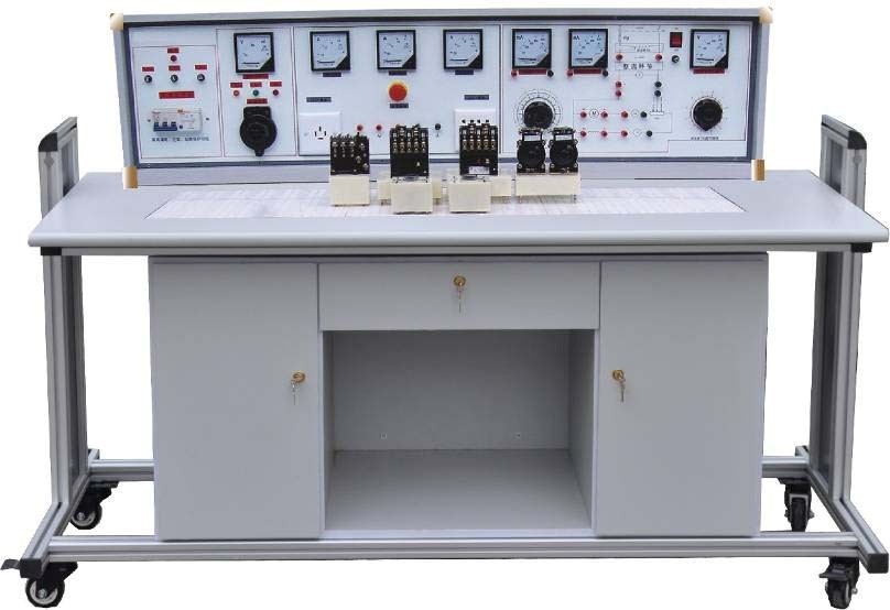 我們研發(fā)的電源控制柜特別設計有三相漏電開關及醒目的帶自鎖急停按鈕,這極大地提升了實驗人員的人身安全和實驗設備的穩(wěn)定性。同時,設備配備的表頭能準確指示工作電流及電壓,功能豐富且實用。值得一提的是,實驗元器件已預先安裝在元件盒上,實驗時無需使用螺絲固定,只需將元件盒輕松插入通用底板即可進行連線實驗,極大地提高了實驗效率。此外,示教臺上的立式演示屏使學生能更清晰地觀看并聽取教師的講解。