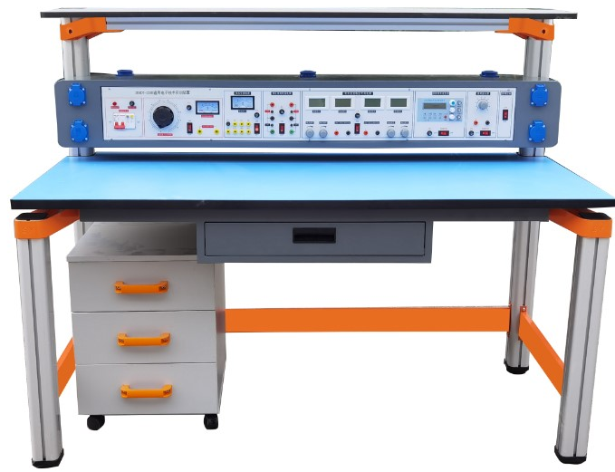 • 結構特點:實訓桌主體由高性能氧化鋁型材和一次性成型鋁壓鑄框架構成,桌面承載力大于200kg,配備儲存柜及通用九孔萬能插件板;