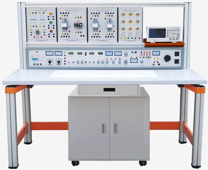 裝置主要包括主機(jī)箱、實(shí)驗(yàn)桌(含九孔萬能插件板)、電氣控制實(shí)驗(yàn)掛箱、掛箱支架、移動(dòng)矮柜、示波器架、透明創(chuàng)新實(shí)驗(yàn)?zāi)K以及學(xué)生凳等。實(shí)驗(yàn)裝置的支架與實(shí)驗(yàn)桌可以實(shí)現(xiàn)組合與拆裝,支架與桌腳一體化設(shè)計(jì),采用鋁合金材質(zhì)。電氣控制實(shí)驗(yàn)掛箱及各類實(shí)驗(yàn)?zāi)K可以根據(jù)實(shí)驗(yàn)需要靈活組合。