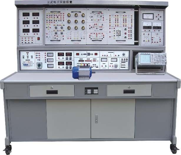 KCLD-626B型立式電工、模電、數(shù)電實(shí)驗(yàn)裝置一、產(chǎn)品的特點(diǎn): 實(shí)驗(yàn)臺(tái)具有較完善的安全保護(hù)措施,較齊全的功能。電工、電氣控制實(shí)驗(yàn)器件采用適應(yīng)性強(qiáng)的模塊式掛箱;在實(shí)驗(yàn)屏上完成實(shí)驗(yàn),實(shí)驗(yàn)方法靈活,動(dòng)手能力強(qiáng),實(shí)驗(yàn)連線接點(diǎn)接觸可靠,符合不同深度,不同廣度的教學(xué)要求。數(shù)電、模電在九孔通用電路板掛箱上完成,根據(jù)實(shí)